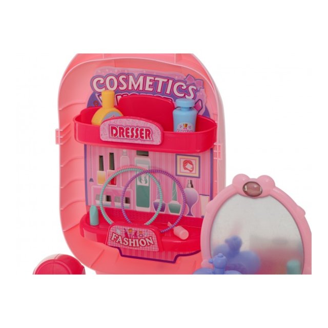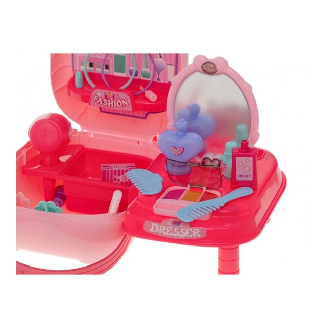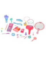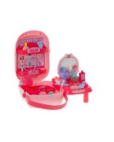 Pārsteigumiem pilns skaistumkopšanas salons ērtā koferī. Skaistajā plastmasas korpusā ir daudz dārgumu, kas patiks ikvienai mazajai dāmai vai topošajai frizierei. Matu sprādzes, rokassprādzes, matu fēns, matu suka ir nepieciešamais aprīkojums ikvienam profesionālajam skaistumkopšanas salonam. Jūsu mīļākais lācis vai lelle dodas uz izlaiduma balli, vai varbūt viņiem ir nepieciešams apmeklēt frizieri un kosmetologu? Uzdāviniet tiem jauku frizūru un padariet tos pēc iespējas skaistākas.