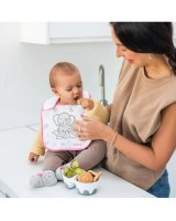 Priekšautiņš I EAT AND I GROW ir izgatavots no augstās kvalitātes kokvilnas frotē auduma. Iekšējais slānis ir no ūdensnecaurlaidīga materiāla, kas papildus aizsargā apģērbu no nosmērēšanās .