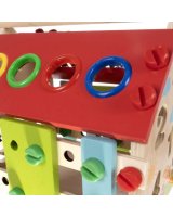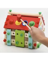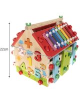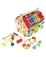 Daudzfunkcionāla izglītojoša māja - katrā mājiņas sānā ir sava radošā rotaļlieta, kas ietekmē bērna attīstību. Ir ksilofons, 2 formu šķirotāji un pat āmurs!