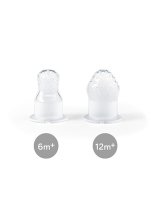 Barošanas zobgrauznis ir neaizstājams palīgs, mācot mazuli ēst. Tas ir lieliski piemērots mazuļa uztura paplašināšanai un mudināšanai izmēģināt jaunus gardumus. Pateicoties zobu graužamajam, jūs varat droši dot mazulim svaigus dārzeņus, augļus un citus ēdienus. Izturīgais silikons ir viegli tīrāms un nodrošina drošību,  novēršot aizrīšanās risku. Turklāt zobu graužamais maigi nomierinās mazuļa smaganas zobu nākšanas laikā un mazinās smaganu sāpes. Pateicoties tā kompaktajam izmēram, jūs varat ņemt zobgrauzni līdzi jebkur, un ērtais rokturis ļaus mazulim pašam sevi pabarot. BĒRNU UZTURA DAUDZVEIDĪBA: dārzeņu un augļu ievadīšana racionā māca mazulim izpētīt dažādas garšas un tekstūras un palīdz attīstīt veselīgus ēšanas paradumus. Pateicoties silikona tīkla izmantošanai, bērns neaizrīsies, mēģinot jaunus cietus ēdienus. SKRŪVES MEHĀNISMS: izmantotais mehānisms atvieglo ēdiena saspiešanu un stumšanu tuvāk mazuļa mutei. Jūs varat droši kontrolēt bērna izmēģināmās pārtikas daudzumu un pieejamību. ATVIEGLOJUMS ZOBU NĀKŠANAS LAIKĀ. Kad jūsu mazulim nāk zobi, viņa smaganas var kļūt ļoti jutīgas. Mīkstais silikona zobgrauznis palīdzēs jūsu mazulim mazināt zobu nākšanas laikā izraisītās sāpes. PĀRDOMĀTS DIZAINS. Ērts rokturis ir lieliski piemērots mazuļa mazajām rociņām un mudina viņu pašam sevi pabarot. Tas ir ērts risinājums, kas ļauj barot mazuli jebkurā vietā un laikā. DROŠS UN VIEGLI TĪRĀMS. Zobu graužamais nesatur kaitīgu BPA. Pārdomāts dizains ļauj viegli uzturēt ierīci tīru. Zobgrauzni var droši applaucēt ar verdošu ūdeni vai noskalot zem tekoša ūdens. DIVI UZGALU IZMĒRI. Komplektā ietilpst divu izmēru uzgaļi (6 un 12 mēneši), kas ļauj pielāgot izstrādājumu bērna vecumam un prasmēm. VĀCIŅŠ AR SKALU. Mērglāze ir praktisks risinājums, kas ļauj ātri un ērti kontrolēt pievienotā ēdiena daudzumu, vienlaikus saglabājot tīru silikona galu. Tehniskie dati. Materiāls: silikons + PP. Izmērs: 5,5 x 10 cm.