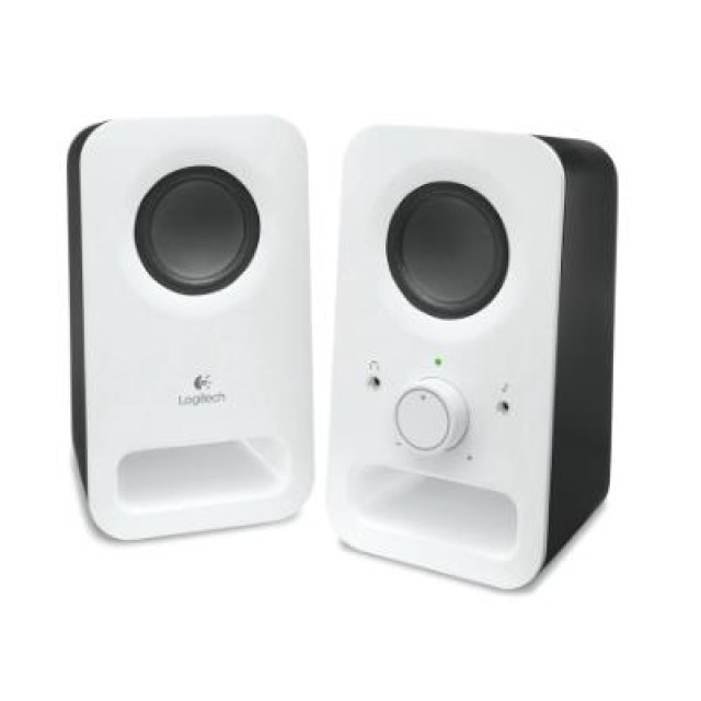 Logitech Z150 Speaker Color: White/Black Total Power (RMS): 3 W 3.5 mm Input: 2 (up to 1080p) Headphone Jack: 1 Controls: Power and Volume Control on Right Speaker Connection: Wired OEM No. 980-000815 https://www.logitech.com/en-eu/shop/p/z150-compact-stereo-speakers.980-000815