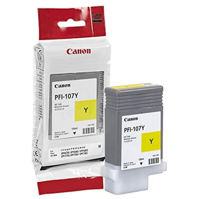 Ink Cartridge Canon PFI-107Y (6708B001) COMPATIBLE with: Canon imagePROGRAF IPF 785 M 40/ 670/ IPF 770/ IPF 770 M 40/ IPF 680 / IPF 680/ 685/IPF 780 / IPF 785/ IPF 780 Colour: Yellow Page yield: ~130ml