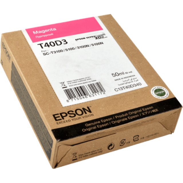 Ink Cartridge Epson T40D3 (C13T40D340/C13T40D34N) COMPATIBLE with: Epson SureColor /SC-T2100/ SC-T3100/ SC-T3100N/ SC-T5100/ SC-T5100N Colour: Magenta Page yield: ~50ml