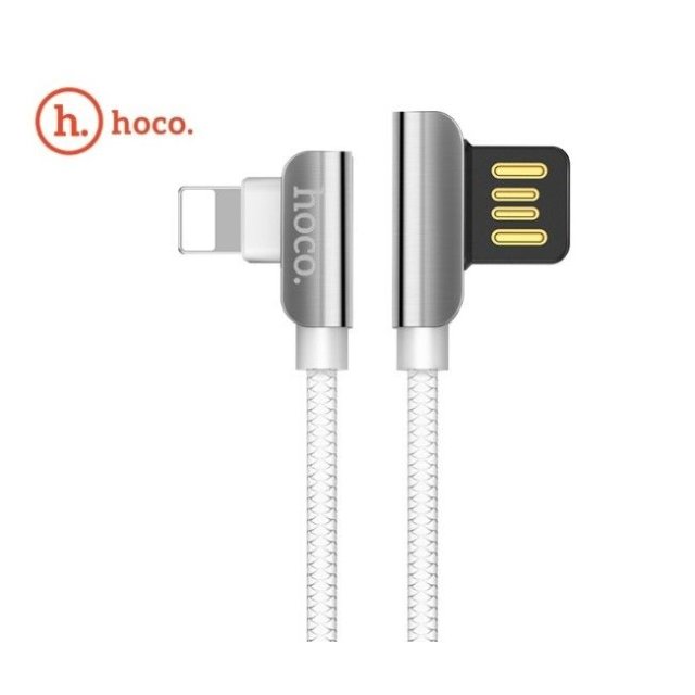 Hoco Apple Shape Lightning to USB Data&Fast Charger Cable 1.2m 90 degree Steel Connecto White
