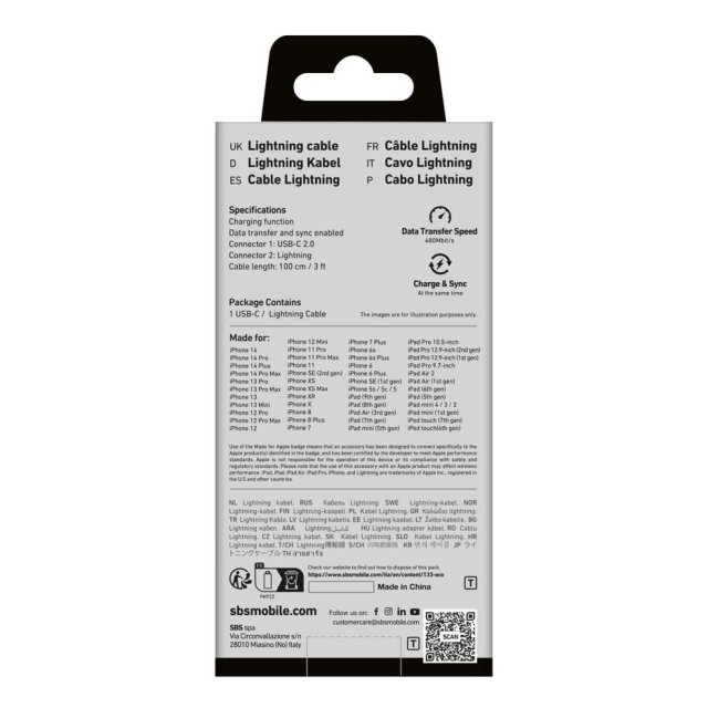 SBS SBS TECABLELIGTC1W USB-C - Lightning Cable MFi Certified, 1m - White
