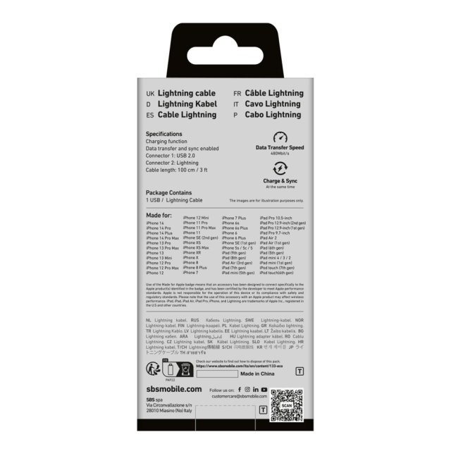 SBS SBS TECABLEUSBIP589K USB-A - Lightning Cable 1m MFi Certified - Black