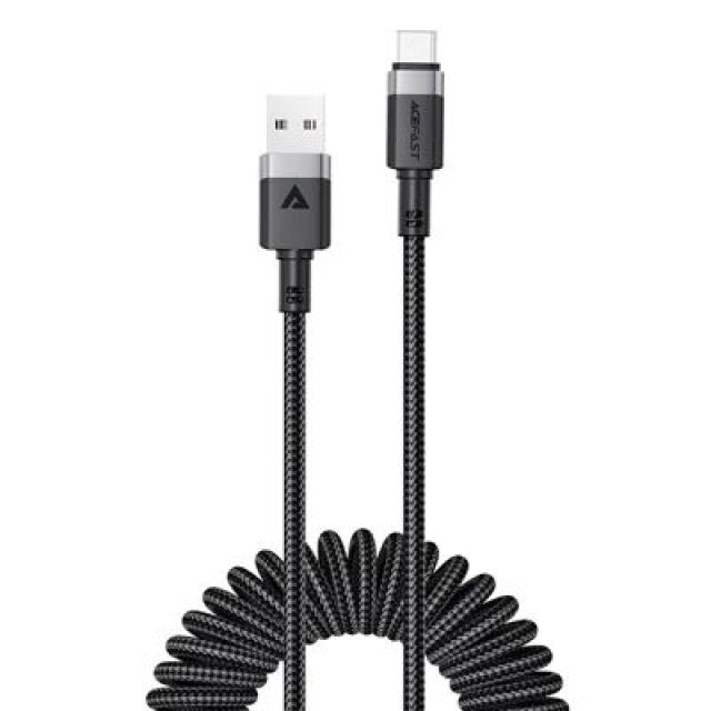 Acefast C14-04 USB-A - USB-C Cable Spring 480Mb/s 3A 1.2m spring charging data cable Black