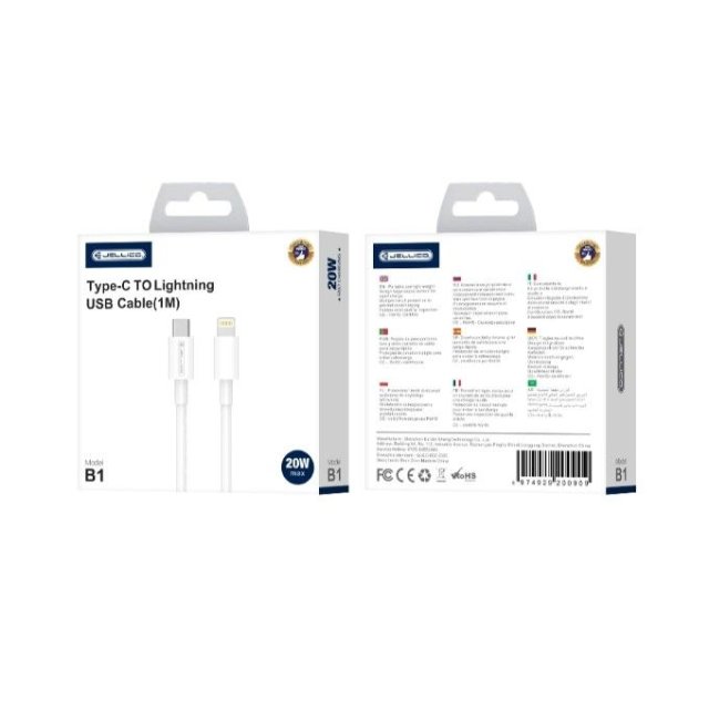 Jellico B1 Durable-Soft iPhone&iPad USB-C to Lightning Data&Fast PD 20W Charger Cable 1m White