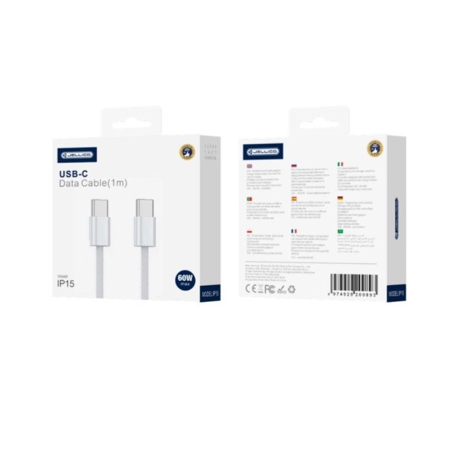 Jellico IP15 Woven Cotton iPhone 15 / 16 USB-C to USB-C Data&Fast PD 60W Charger Cable 1m White