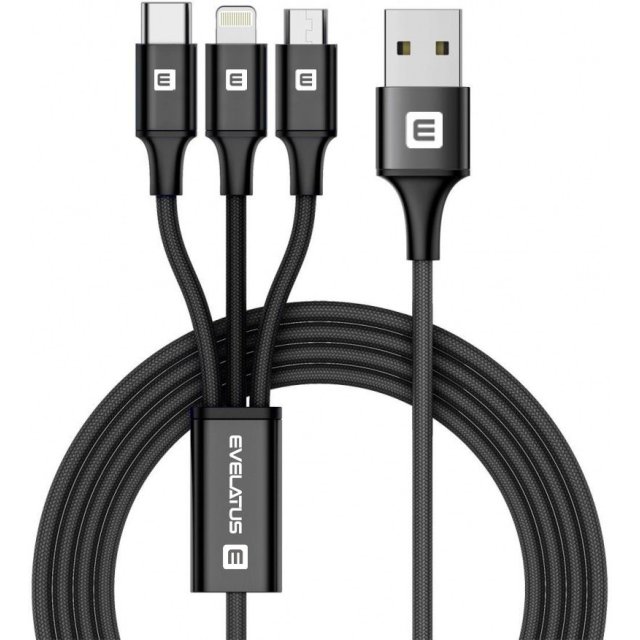 Evelatus - Evelatus Data cable 3in1 (Ligtning, Type-C, Micro USB ) LTM01 Black