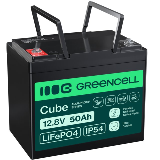 Green Cell CUBE LiFePO4 50Ah 12.8V 640Wh Lithium Iron Phosphate Battery for Camper, Golf Cart,Wind Power Plant, LFPGC12V50AH