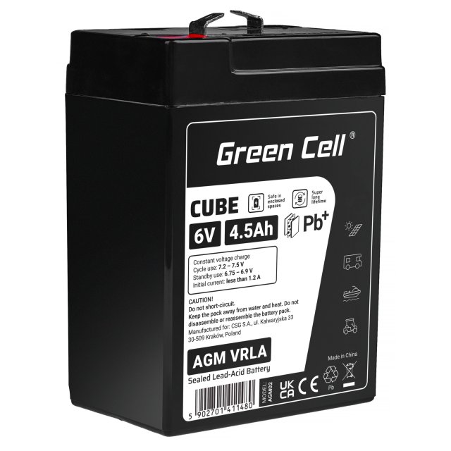 Green Cell CUBE AGM IP54 6V 4Ah VRLA Battery Gel deep cycle scooter mower boat barge mower tractor fishing boat, AGM6V4-5AH-J
