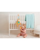 Jautrais pērtiķītis izklaidēs jūsu mazuli, un, kad pienāks laiks gulēt, tas atskaņos burvīgu šūpuļdziesmu pirms gulētiešanas. Rotaļlieta ir rotāta ar mīkstu zobgrauzni banānu, kas noteikti noderēs jebkuram mazulim. Pērtiķis ir šūts no dažādu krāsu, rakstu un faktūru materiāliem, lai stimulētu mazuļa maņas, rosinot viņu uz sensorām pasaules izzināšanām. Lai ieslēgtu mūzikas kastīti, vienkārši pavelciet riņķus, kas atrodas uz pērtiķa astes. Rotaļlietai ir praktisks piekariņš, ar kuru pērtiķīti var piestiprināt jebkurā vietā, lai tas pavadītu mazuli. Izstrādājums ir piemērots bērniem no dzimšanas dienas.